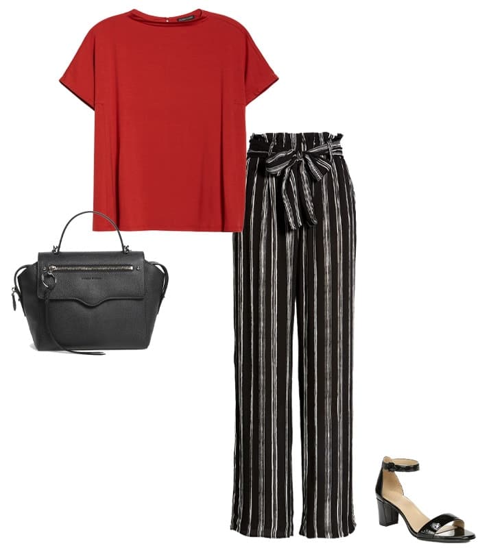 4. Pantalon imprimé, haut uni, sandales